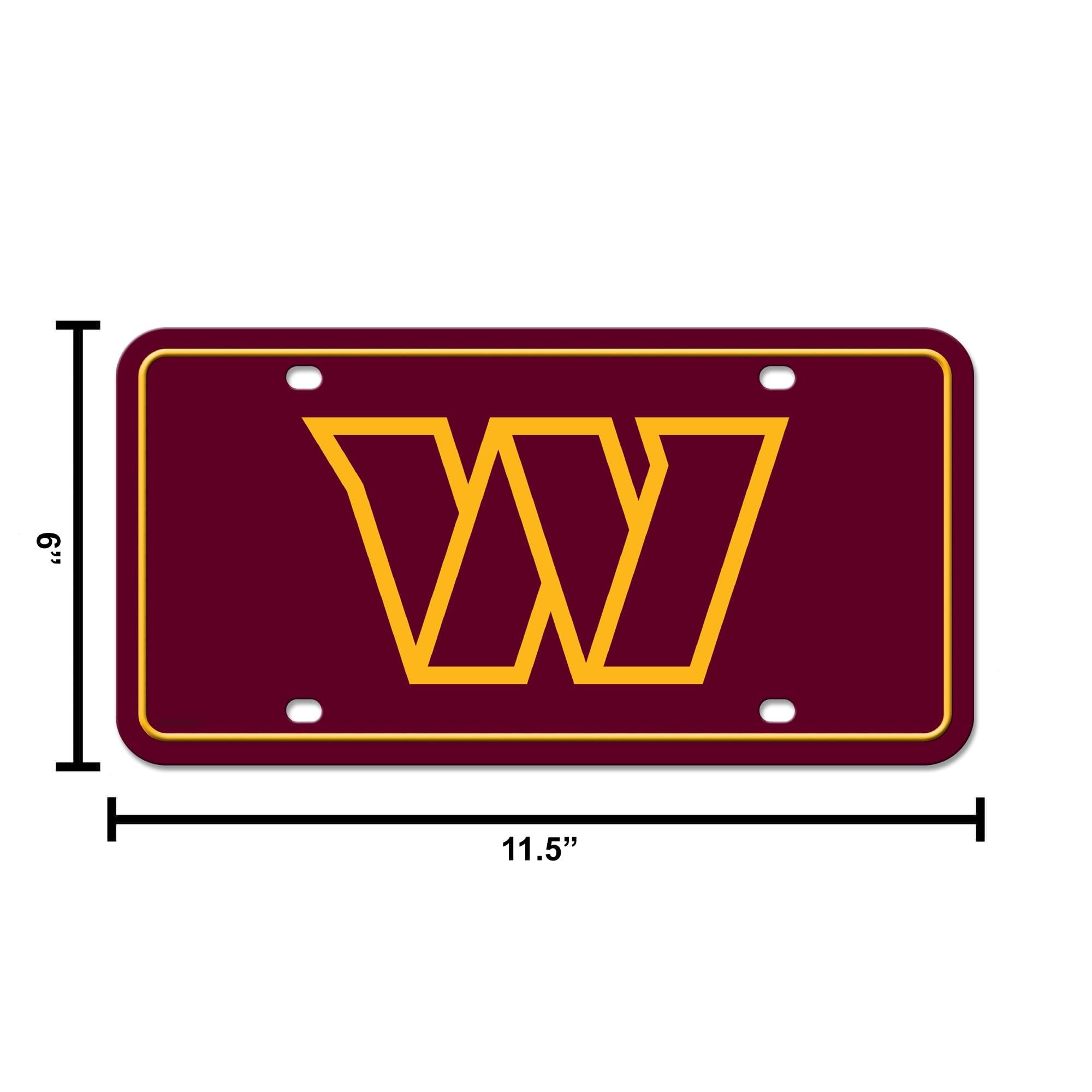 Washington Commanders Team Logo Metal Auto Tag 6" x 12" A great gift idea for Commanders football fans that is guaranteed to be a beloved possession with eye catching graphics. Durable and fade resistant, the 12" x 6" automobile tag is expertly made, using quality aluminum which ensures it can survive the different season and extreme weather. This auto accessory is perfect for the casual and everyday fan. Whether it is game day at the stadium or a home game with friends this auto tag will be the highlight of the drive. This tag can be used on the front or back or your car, truck, or RV. It can also be used on your trailer. Has predrilled screw holes to easily attach onto your automobile. Hassle free!Great Gift Item for NFL Football Fans: Guaranteed to be your most beloved possession as it boasts eye catching graphics and is inscribed with your favorite squad’s name and colors. Proudly display your favorite teams name and colorA One-Of-A-Kind Tag – Be the first to own an exceptionally durable, fade resistant 12" x 6" automobile tag. Expertly made, using quality aluminum which ensures your tag can survive the different season and extreme weather.A Fan Favorite 12" x 6" Car/Truck Tag - This auto accessory is perfect for the casual and everyday fan. Whether it is game day at the stadium or a home game with friends this auto tag will be the highlight of the drive.High Performance & Versatile: This brand-new accessory tag can be used on the front or back or your car, truck, or RV. It can also be used on your trailer. Has predrilled screw holes to easily attach onto your automobile. Hassle free!Bring Your Room Car To Life With This Officially Licensed Car/Truck Tag - A limited edition collectible that will be talked about forever whether you are a casual, social, or super fanatic fan. All your friends will be asking you where you got your auto Tag!