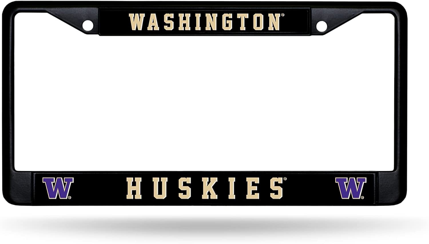 University of Washington Huskies Black Metal License Plate Frame Chrome Tag Cover 6x12 Inch
