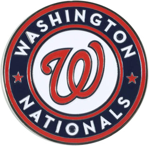 Washington Nationals Premium Solid Metal Raised Auto Emblem, Team Color, Shape Cut, Adhesive Backing