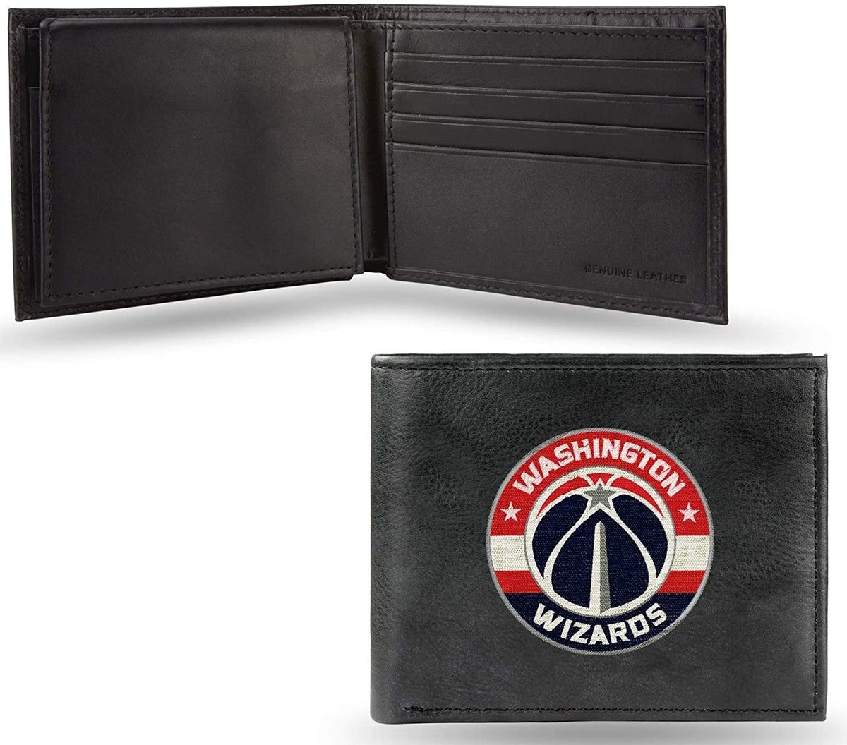 Washington Wizards Premium Black Leather Wallet, Bifold Billfold, Embroidered Logo