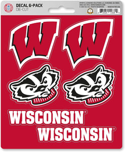 University of Wisconsin Badgers 6-Piece Decal Sticker Set, 5x6 Inch Sheet, Gift for football fans for any hard surfaces around home, automotive, personal items