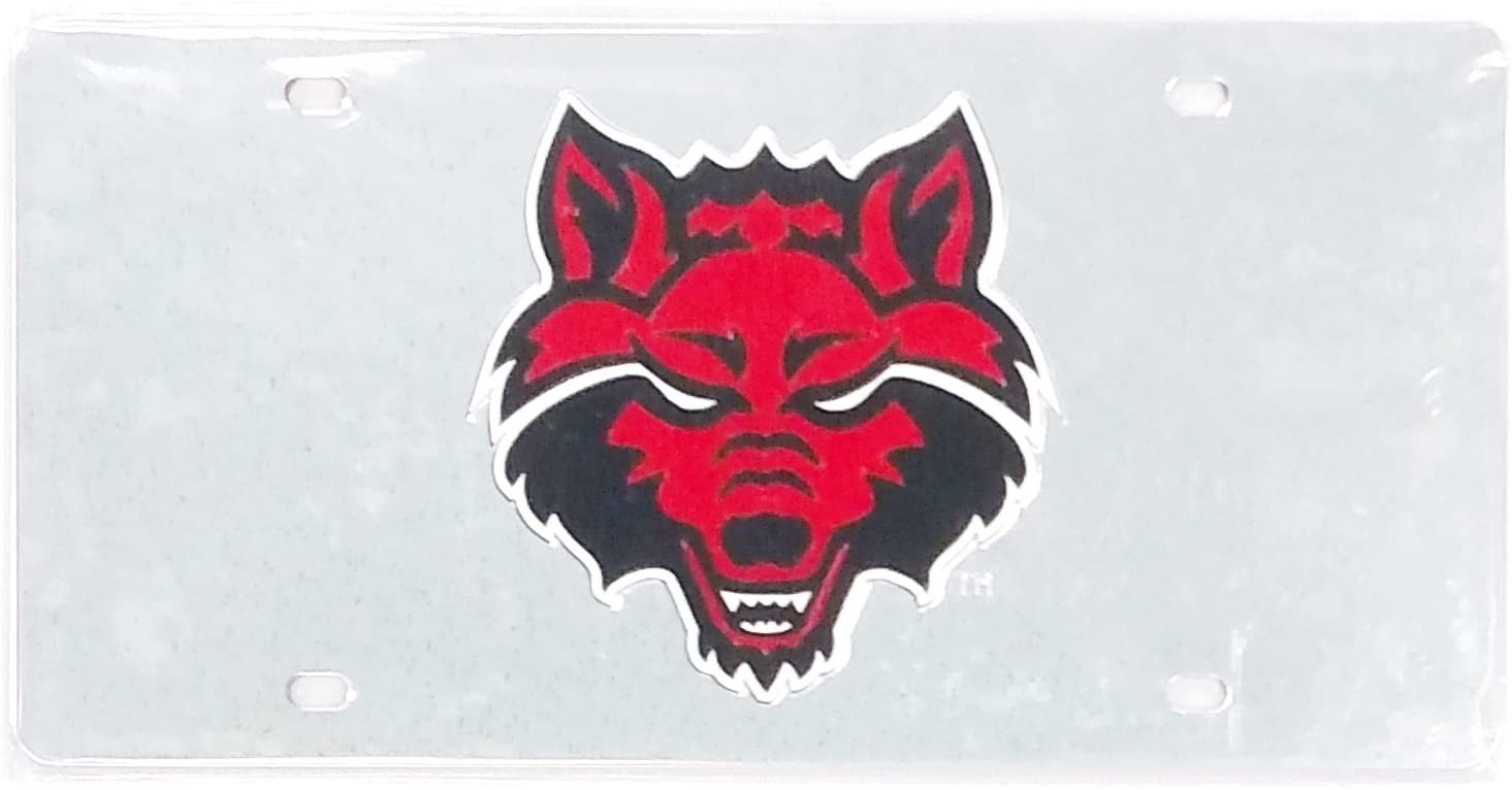 Arkansas State University Red Wolves Premium Laser Cut Tag License Plate, Mirrored Acrylic Inlaid, 6x12 Inch