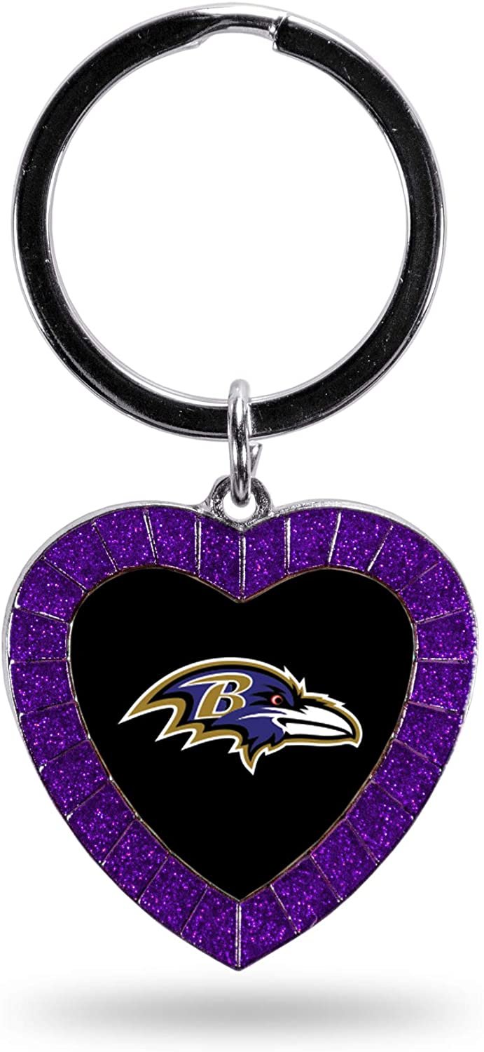 Your heart beats to the sounds of your team's fight song, to the tick of the buzzer, to the sounds of player's feet thumping on the field or on the court. Take your team's heart with you through your day with Rico Industries Color Heart Shaped Key Chain. This nickel plated metal key chain measures 1.375" x 3" and sparkles brightly with its team color rhinestones. Classic split-ring attaches quickly to your keys, bag, lanyard, and more. Key chain is imported and finished in the US. Show your team pride all the time with a Heart Shaped Key Chain.Keychain measures 1.375" x 3"Colored team logo is encircled by matching team color rhinestonesClassic split-ring with jump ring attaches securely to heartNickle plated metal is durable and sleekOfficially Licensed - Baltimore Ravens