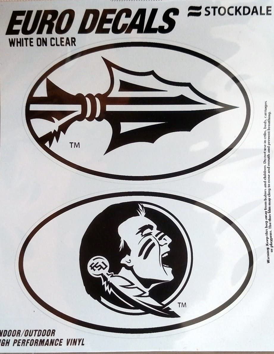 Florida State University Seminoles 2-Piece White and Clear Euro Decal Sticker Set, 4x2.5 Inch Each