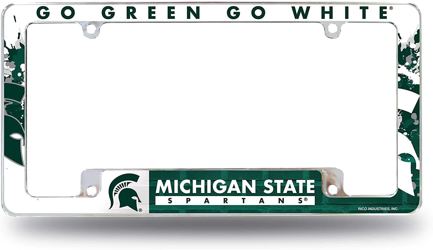 Michigan State University Spartans Metal License Plate Frame Chrome Tag Cover, All Over Design, 6x12 Inch