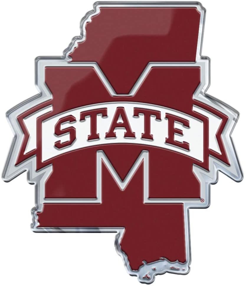 Mississippi State University Bulldogs Team State Design Auto Emblem, Aluminum Metal, Embossed Team Color, Raised Decal Sticker, Full Adhesive Backing