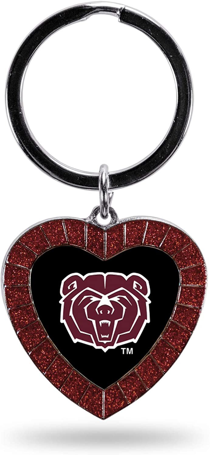 Missouri State University Bears Keychain Rhinestone Heart Colored, Maroon, 3-inches in length