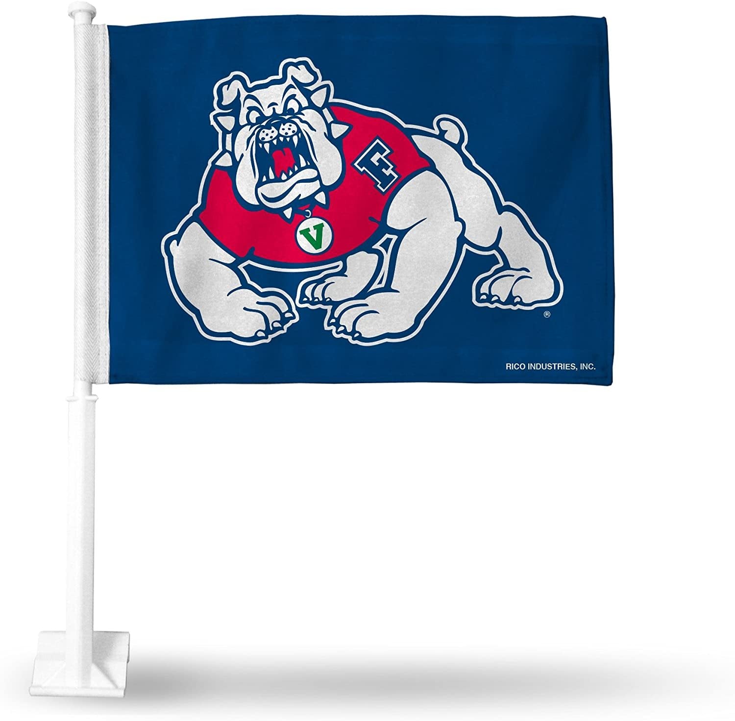 Fresno State University Bulldogs Premium Double Sided Car Flag Banner, Includes Plastic Display Pole