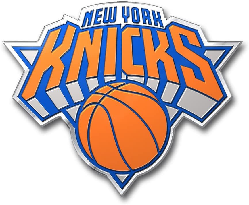 New York Knicks Auto Emblem, Aluminum Metal, Embossed Team Color, Raised Decal Sticker, Full Adhesive Backing