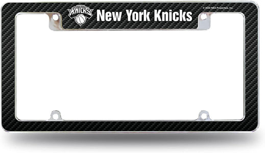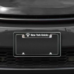 New York Knicks Metal License Plate Frame Chrome Tag Cover Carbon Fiber Design 6x12 Inch