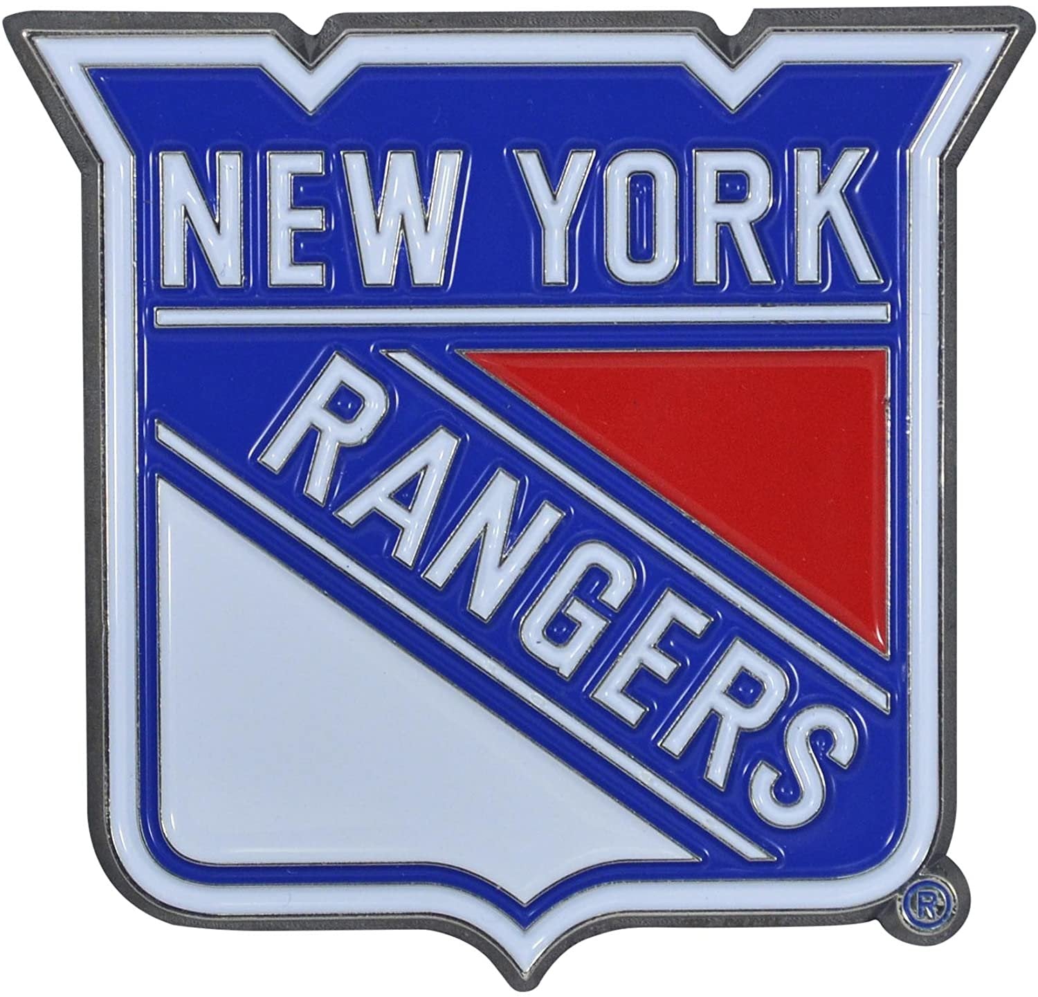 New York Rangers Premium Solid Metal Raised Auto Emblem, Team Color, Shape Cut, Adhesive Backing