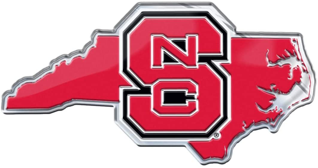 North Carolina State University Wolfpack Auto Emblem, Aluminum Embossed, State Design, 3.5 Inch, Adhesive Backing