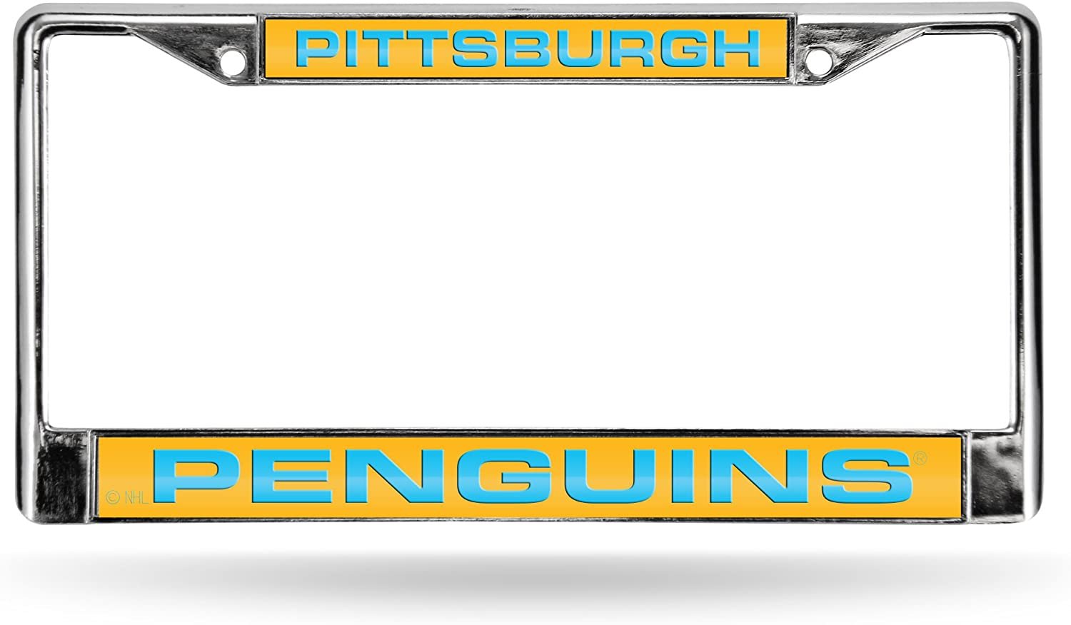 Pittsburgh Penguins Metal License Plate Frame Chrome Tag Cover, Laser Acrylic Mirrored Inserts, 12x6 Inch