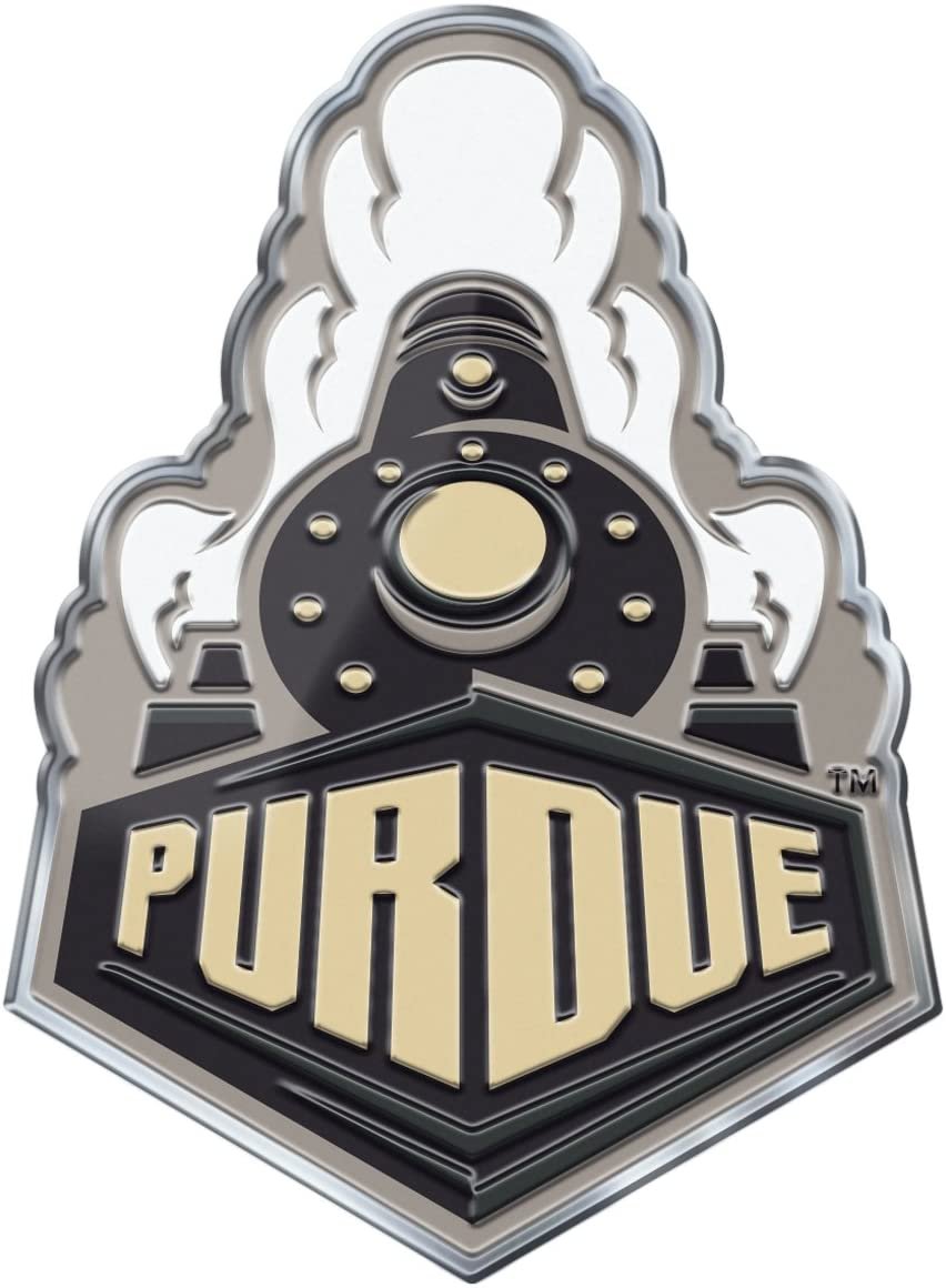 Purdue University Boilermakers Premium Aluminum Metal Raised Auto Emblem, Alternate Logo, Color Embossed, Full Adhesive Backing