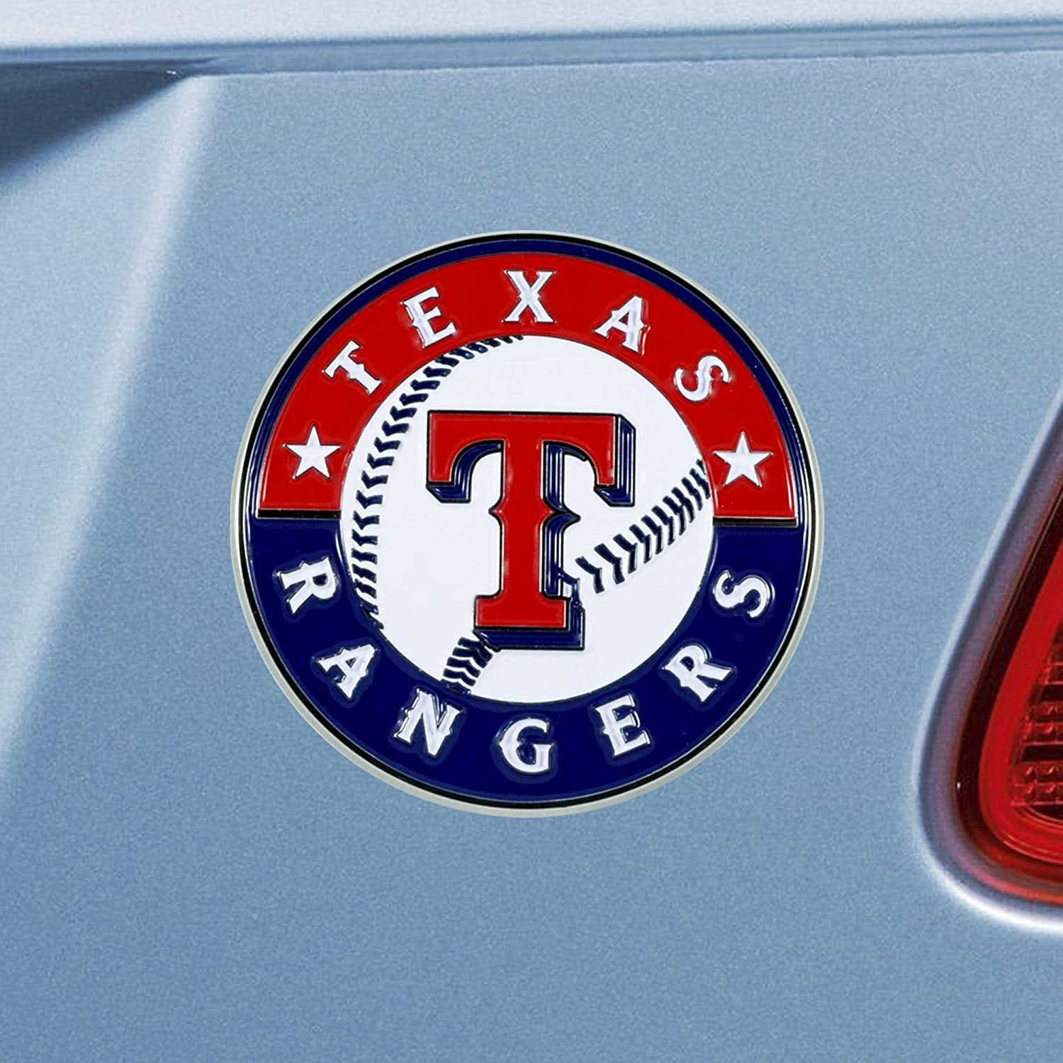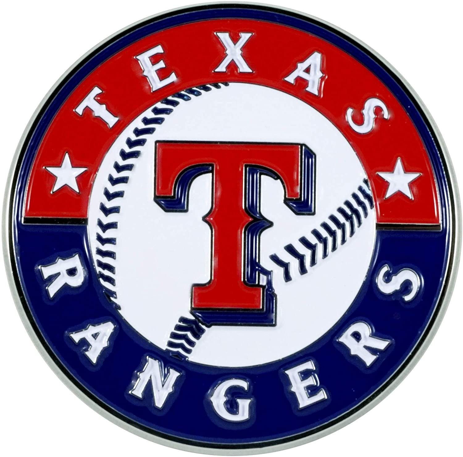 Texas Rangers Solid Metal Color Raised Auto Emblem, Adhesive Tape Backing