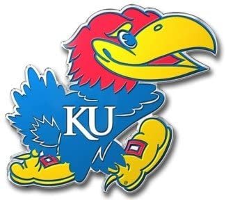 University of Kansas Jayhawks Auto Emblem, Aluminum Metal, Embossed Team Color, Raised Decal Sticker, Full Adhesive Backing