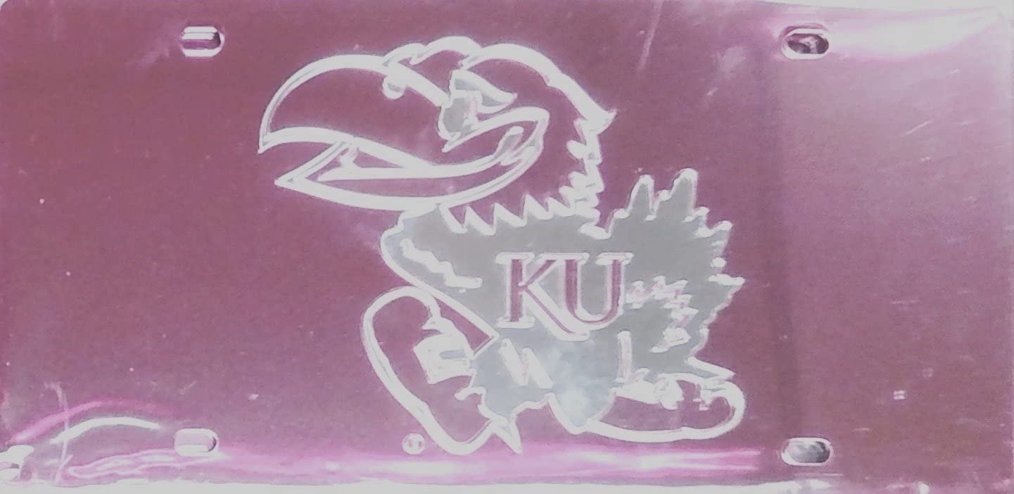 University of Kansas Jayhawks Premium Laser Cut Tag License Plate, Pink Design, Mirrored Acrylic Inlaid, 6x12 Inch