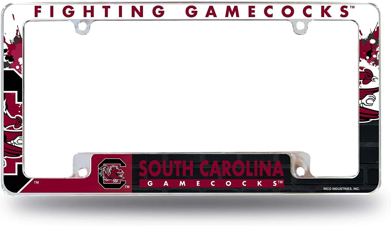 University of South Carolina Gamecocks Metal License License Plate Frame Tag Cover, All Over Design, 12x6 Inch